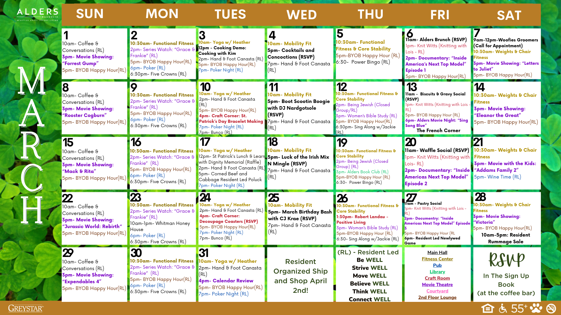 More than a community, it’s a lifestyle.There is always something happening at Alders Magnolia. We create a full range of experiences weekly at our active adult apartments, hosting social gatherings often so you can keep as busy and active as you would like. Become a part of something more when you live at Alders Magnolia. Check out the events calendar below to see how Alders Magnolia goes above and beyond the typical average active retirement community!